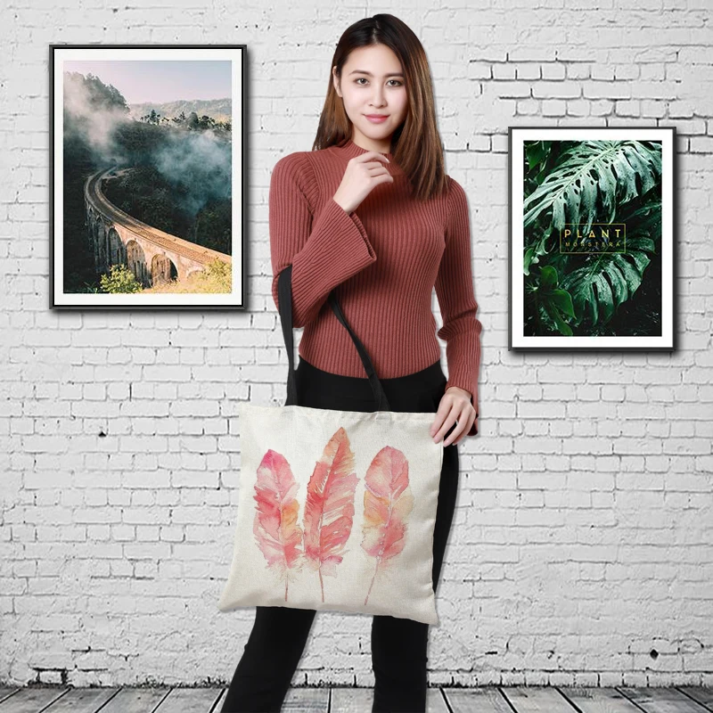 Подгонянная женская сумка с принтом, двухсторонняя льняная женская сумка с принтом, популярные элементы, для путешествий, шоппинга, тканевые сумки с принтом