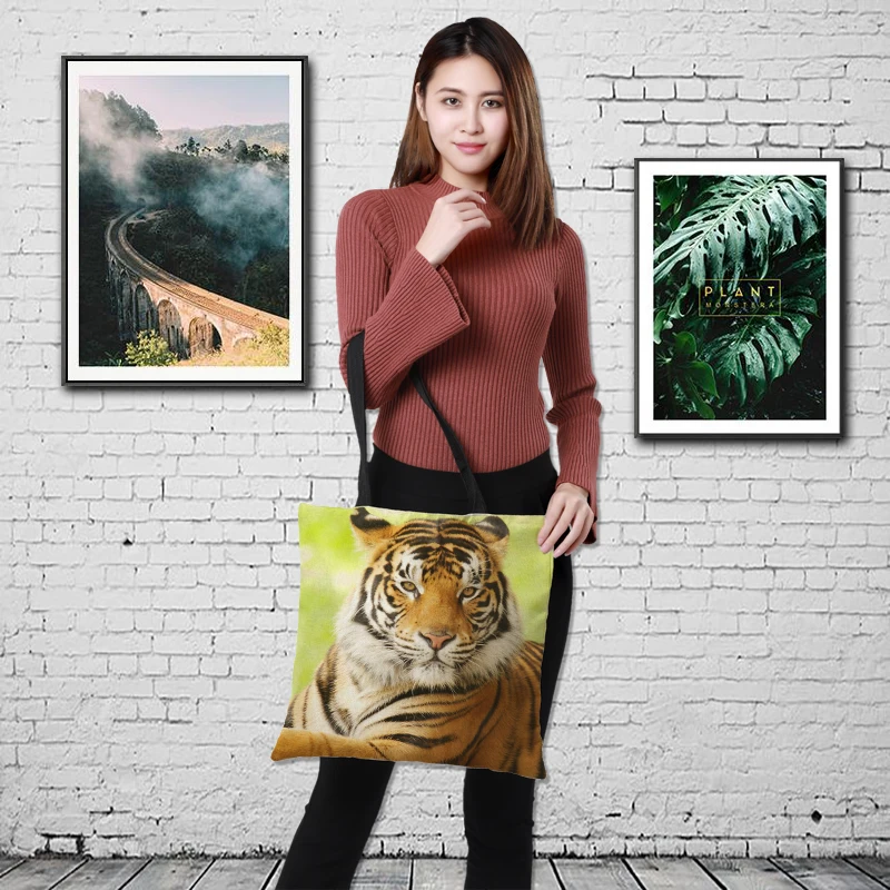 CROWDALE двусторонняя печать с принтом тигра Лен Для женщин большая хозяйственная сумка Шолдер Сумка для дамы льняная сумочка сумка