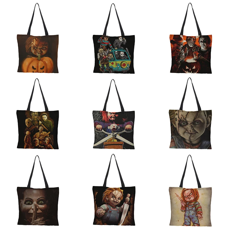 CROWDALE 43 см * 43 см двухсторонний напечатанная Тыква стиль печатный женский большая сумка для покупок женский льняной мешок Хэллоуин подарок с...