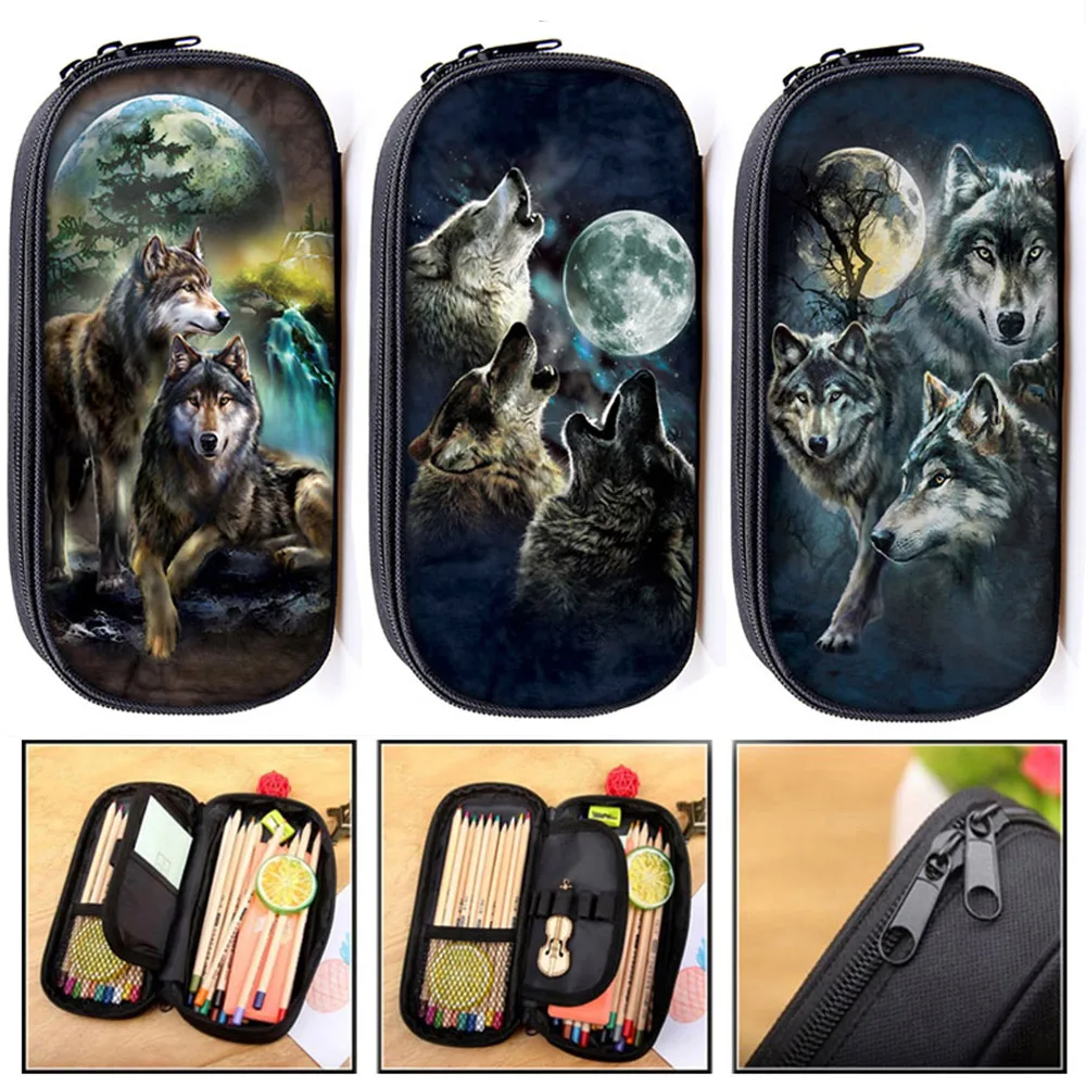 Прохладный Воющий волк печати косметический Чехол Пенал подросток обувь для мальчиков пенал детей школьный макияж сумк