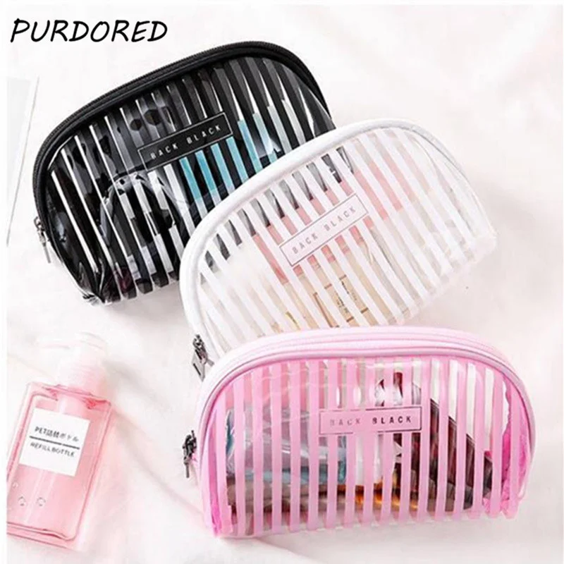 PURDORED 1 шт. прозрачный полосатый косметичка ясно для женщин Макияж сумка-Органайзер для путешествий несессер комплект kosmetyczka дропшиппинг