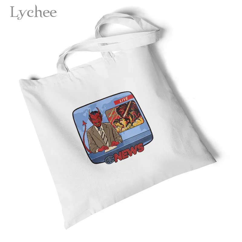 Женская Холщовая Сумка Lychee Harajuku с принтом демона и дьявола, складная многоразовая сумка-тоут, оригинальная большая сумка для покупок, сумка ...