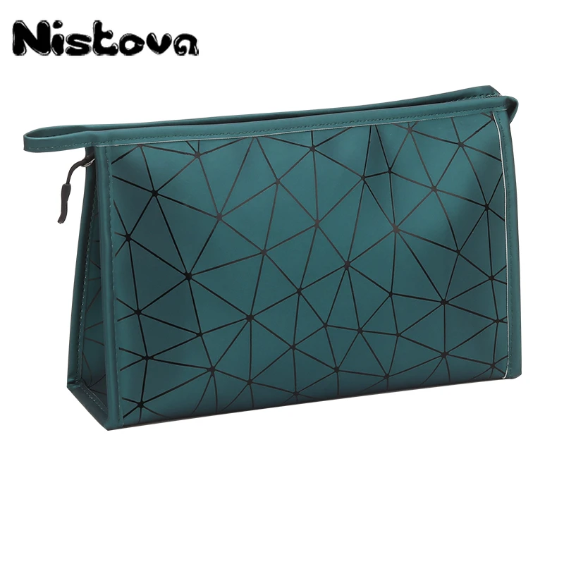 Косметичка из искусственной кожи с ромбовидной решеткой для женщин, водонепроницаемый дорожный органайзер, набор туалетных принадлежностей, чехлы для дамских косметических принадлежностей, чехол для макияжа