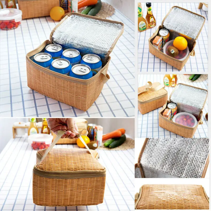 Свежесть, изоляция, сумка для обеда из ротанга, женская, мужская, Детская сумка для обеда, сумка-тоут, ланч органайзер, держатель для обеда, ко...
