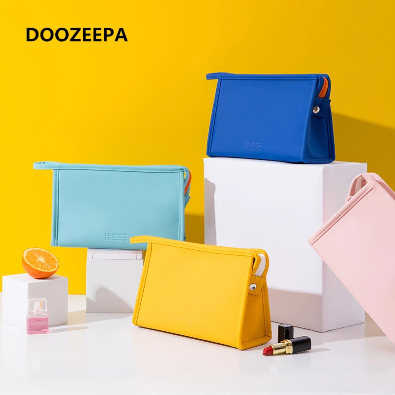 Сумка для макияжа DOOZEEPA Женская, водонепроницаемая, из искусственной кожи, портативная, для макияжа, косметичка, органайзер для путешествий, карамельного цвета