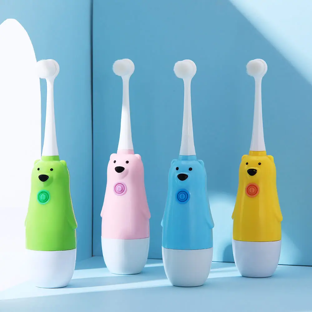 Детская звуковая электрическая зубная щетка 10000 волос с мультяшным рисунком для детей, водонепроницаемая зубная щетка + 3 сменные головки батареи