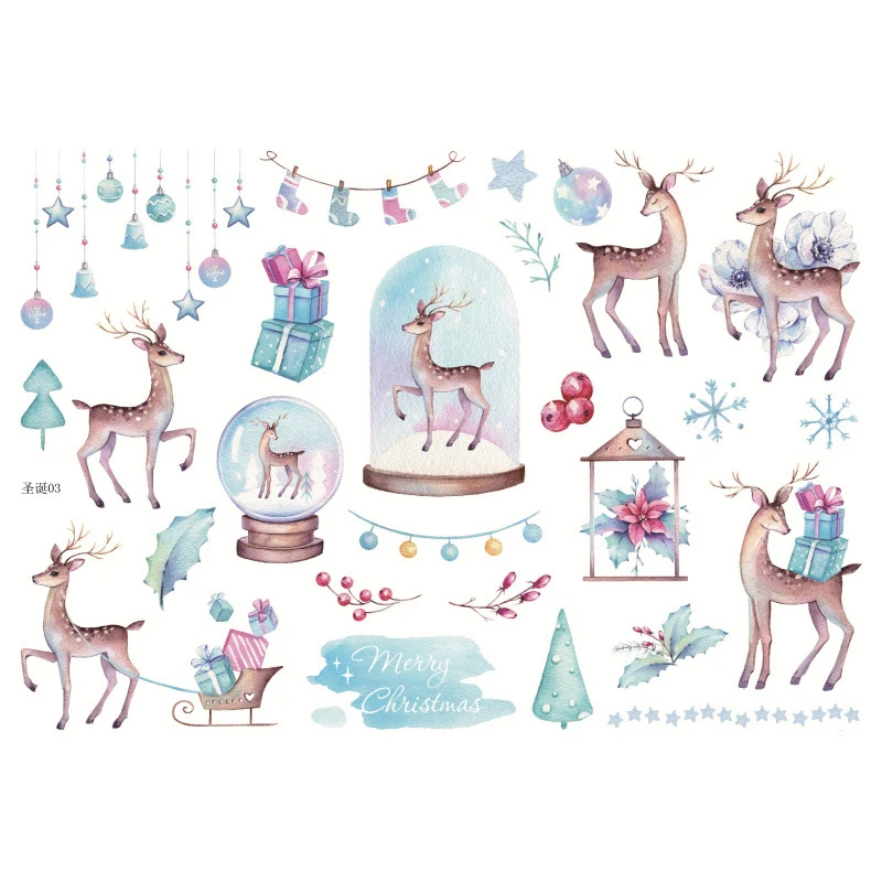 Рождественские наклейки дизайн кавайного Санта Клауса/лося/снеговика/Рождественская елка/венок для детских эскизов канцелярские принадлежности для альбома TZ74