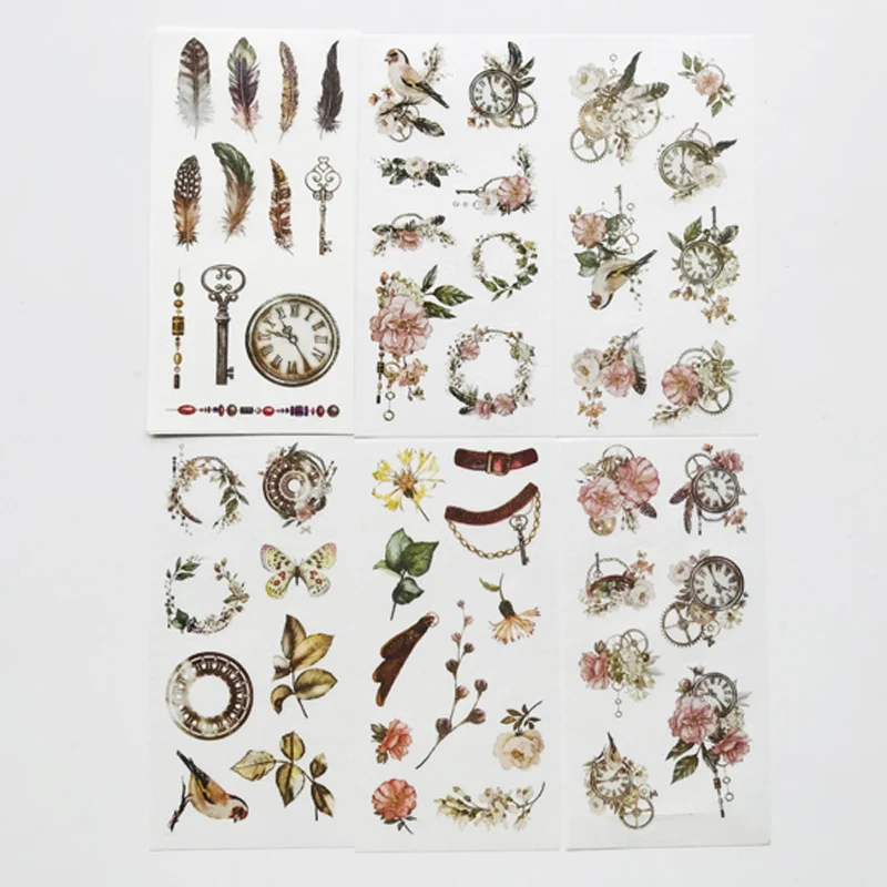 6 листов в старое время бабочки и время цветы бумажные наклейки декоративные Сделай Сам Уплотнительная паста палка этикетка