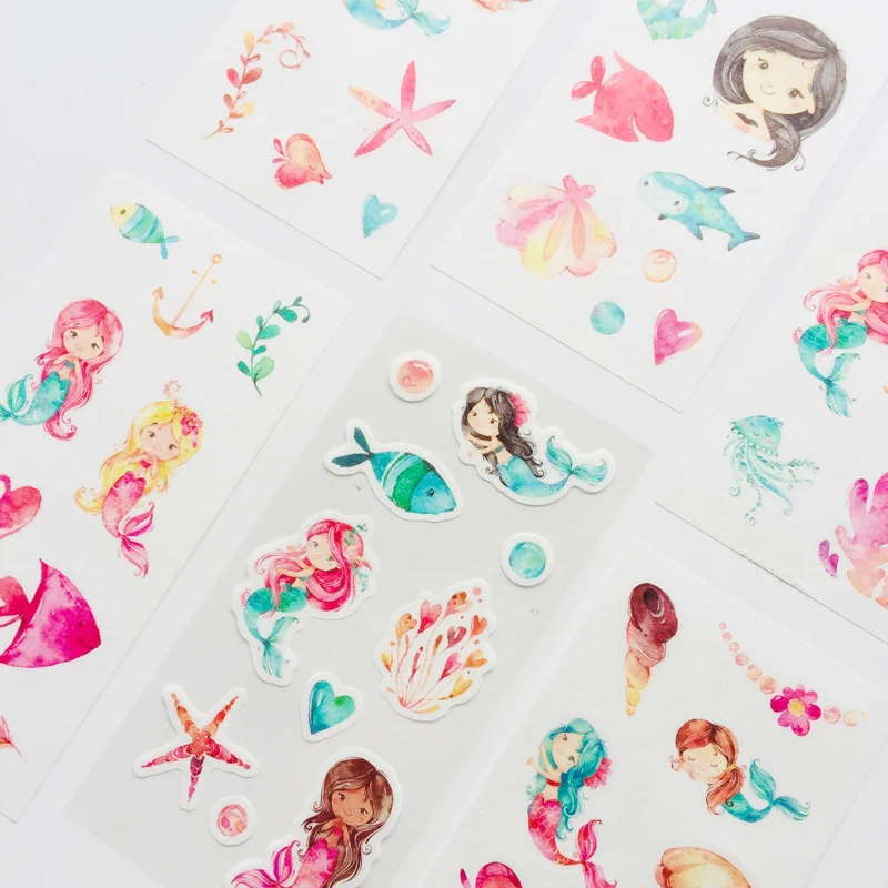 6 листов милые девушки русалки и рыбы декоративные наклейки этикетки палки украшения
