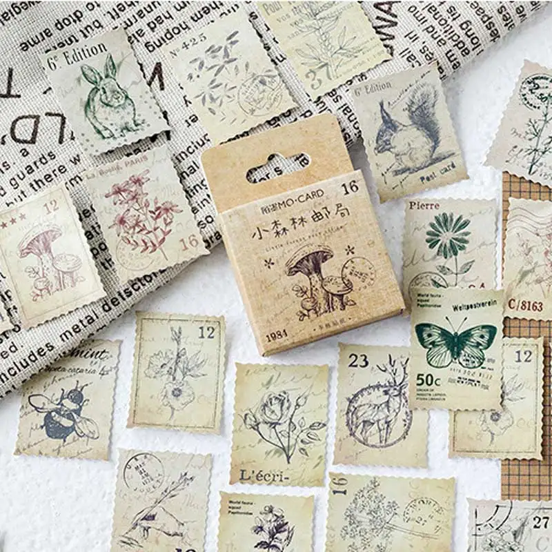 46 шт./кор. лесное растение оттиск животного мини винтажная бумажная наклейка s Скрапбукинг Канцелярские ретро декоративные журнал Отрывные ...