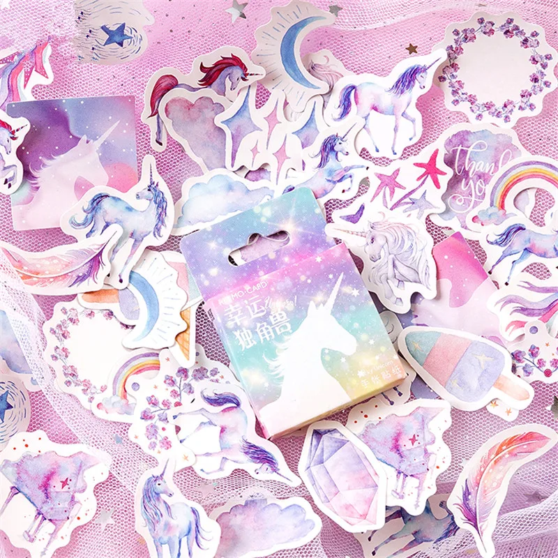 46 шт./кор. Kawaii Единорог DIY стикер детский дневник стикер фото Стикеры для украшения альбома офис канцелярский школьный офисный поставка