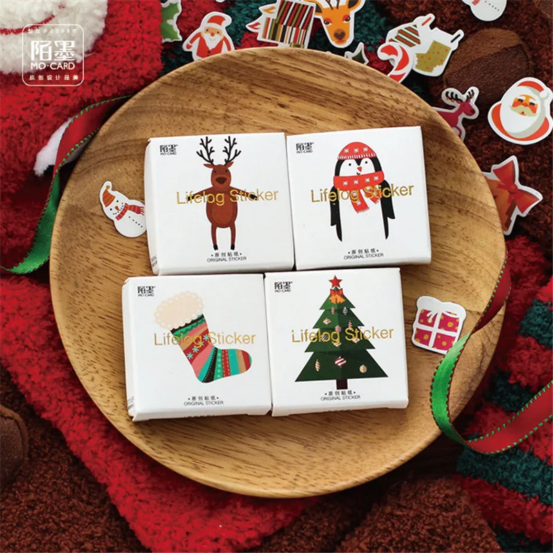 50 шт./пакет Милые Рождество тема Клей бумажная наклейка для творчества карты Скрапбукинг Канцелярские бумага наклейки Рождественская елка ...