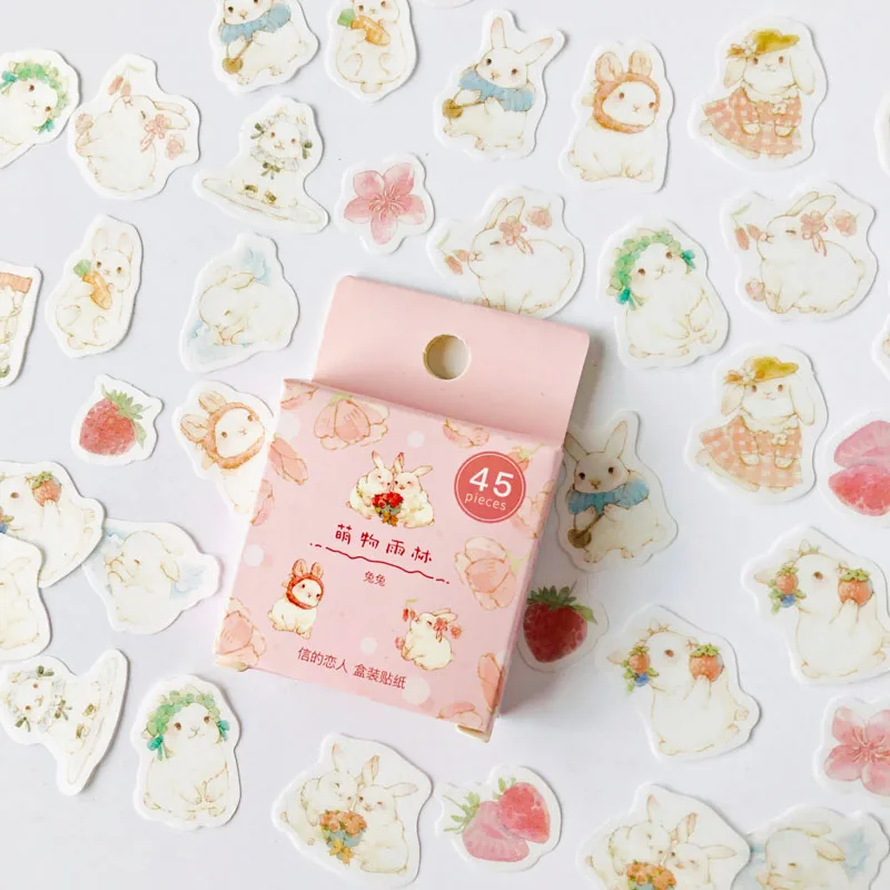 45 шт./кор. милые белые кролики клубника Васи бумажные декоративные наклейки украшение для ноутбука