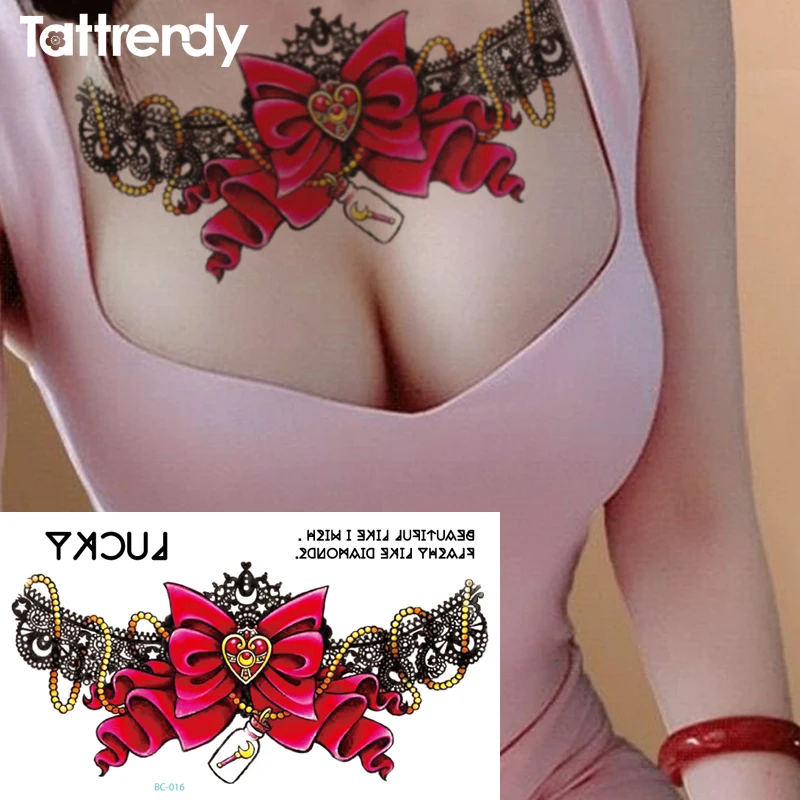 1 шт новая грудь флэш-Татуировка любовь лук дрейфующий бутылка чокер большой плечо рука татуировка на грудь хна тело/талия краска под грудью