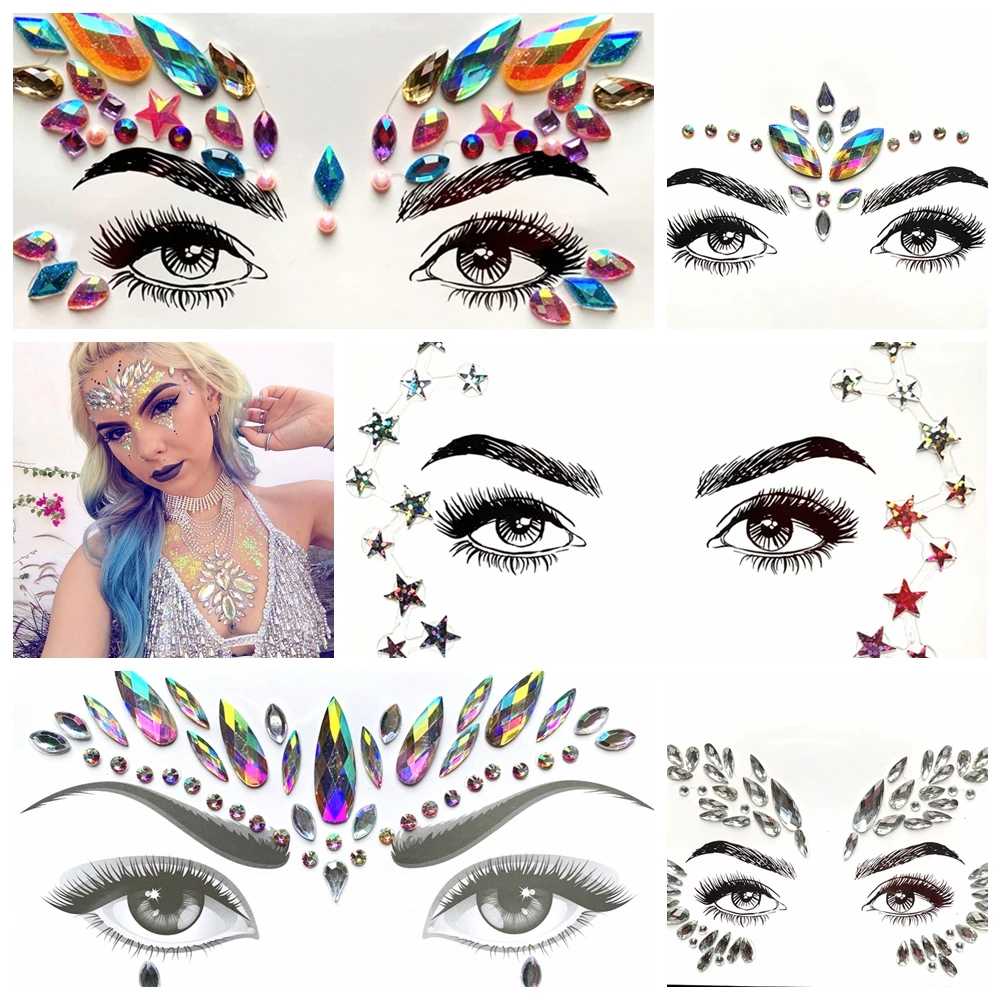 3D флэш-глаза ювелирные наклейки блеск лицо драгоценные камни татуировки паста Богемия Самоклеющиеся боди-арт для фестиваля алмазные украш...