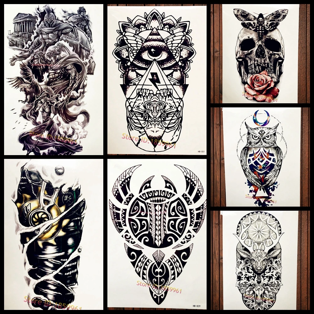 татуировки временные тату Водостойкая временная татуировка, наклейка, коза, меч, череп, флеш-тату, Люцифер, Сова, волк, демон, боди-арт, рука, поддельные тату для женщин и мужчин