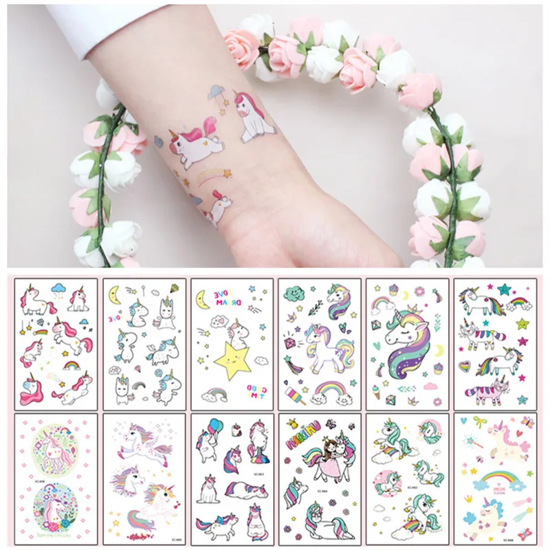 Rocooart мультфильм Единорог татуировки для детей милые поддельные Тати детей Tatouage Temporaire Body Art Водонепроницаемый Временные татуировки Стикеры