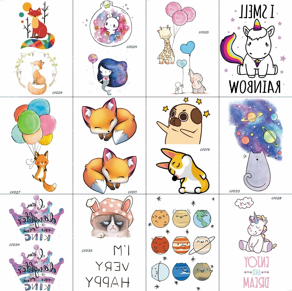Flash Fox детские наклейки-татуировки, Детские боди-арта, временная татуировка, милые Мультяшные женские фальшивые татуировки, животные, подарк...