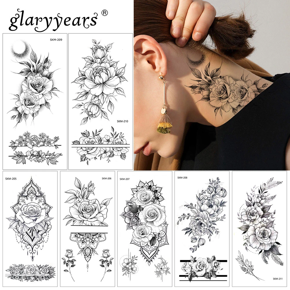 1 шт. Мода поддельные цветок водостойкие тату WM-LS1006 временный белый для женский боди-арт татуировки Модные серьги чокер ярлык для ювелирных ...