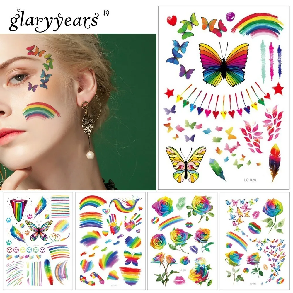 Glaryyears 1 лист Красочные Временные татуировки стикеры поддельные Радуга макияж флеш-тату водостойкие Малый средства ухода за кожей