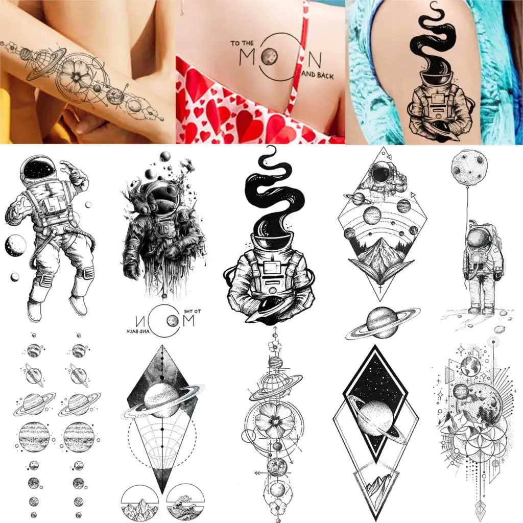 Космонавт временные татуировки наклейки для детей астронавт тату Луна и Вселенная поддельные татуировки иллюстрации для мужчин, женщин, де...