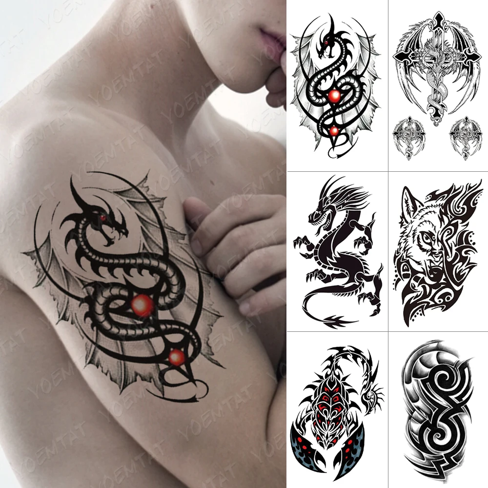 Классные Временные татуировки для взрослых, стикеры для девочек, геометрические, Черный волк, лицо, водостойкие татуировки, паста для женщи...