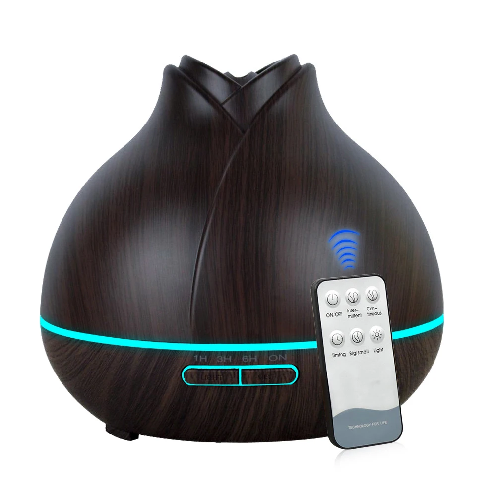 400 мл Ароматический диффузор эфирного масла с дистанционным управлением ультразвуковой увлажнитель воздуха очиститель с древесным зерном ...