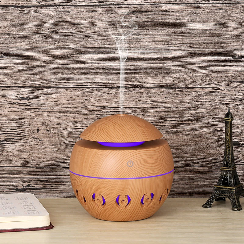 Увлажнитель воздуха, 130 мл, аромараспылитель эфирных масел с текстурой древесины, 7 цветов, светодиодный меняющий свет для офиса и дома