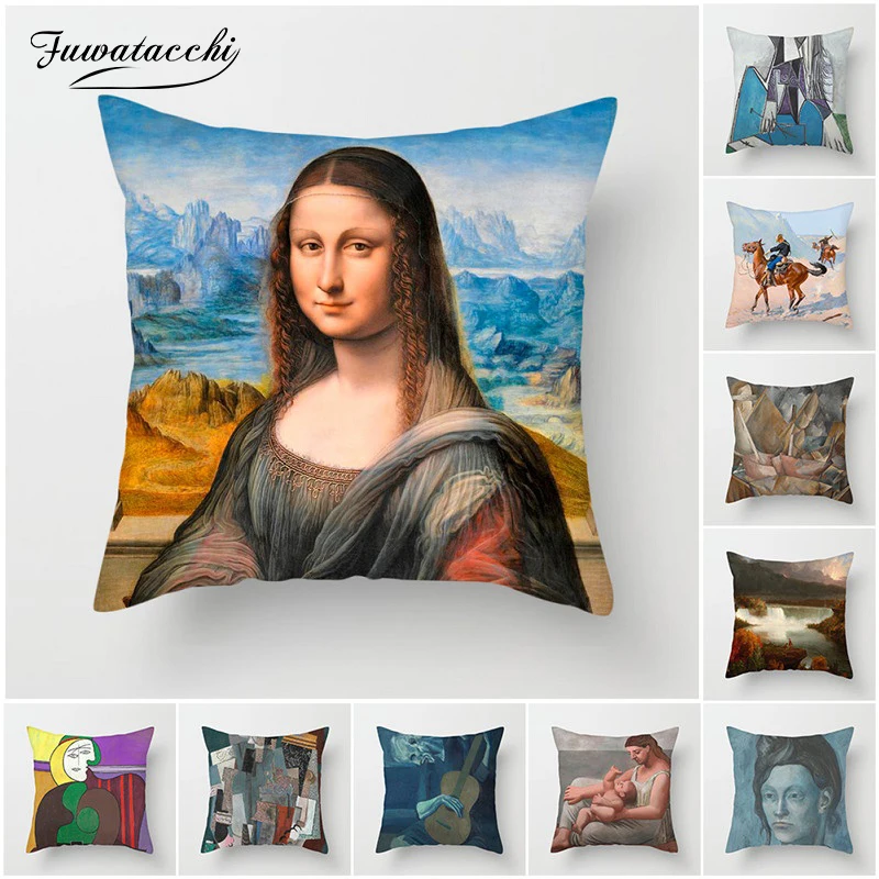 Fuwatacchi Мона Лиза окрашены Чехлы для подушек известный масло Подушка с изображением чехол домашнего кресла Диван Декоративные цветок Pillowscases