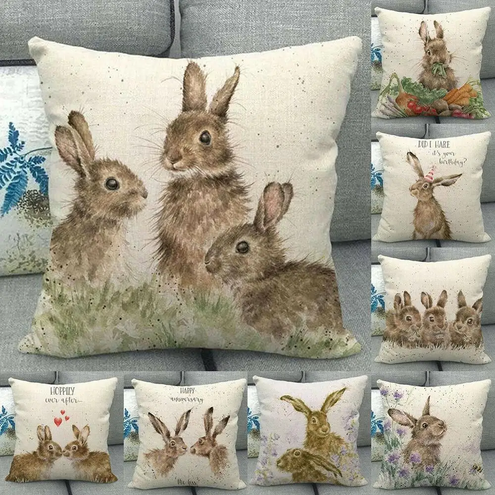 45x45 см площадь лен наволочка подушка Кролик чехол Кролик Подушка наволочки, покрытия для подушек Home Decor Q0