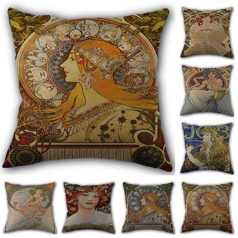 Изготовленный На Заказ Альфонс Муха арт наволочка льняное белье фабричный Текстиль для дома наволочка квадратной формы размером 45*45 см, сва...
