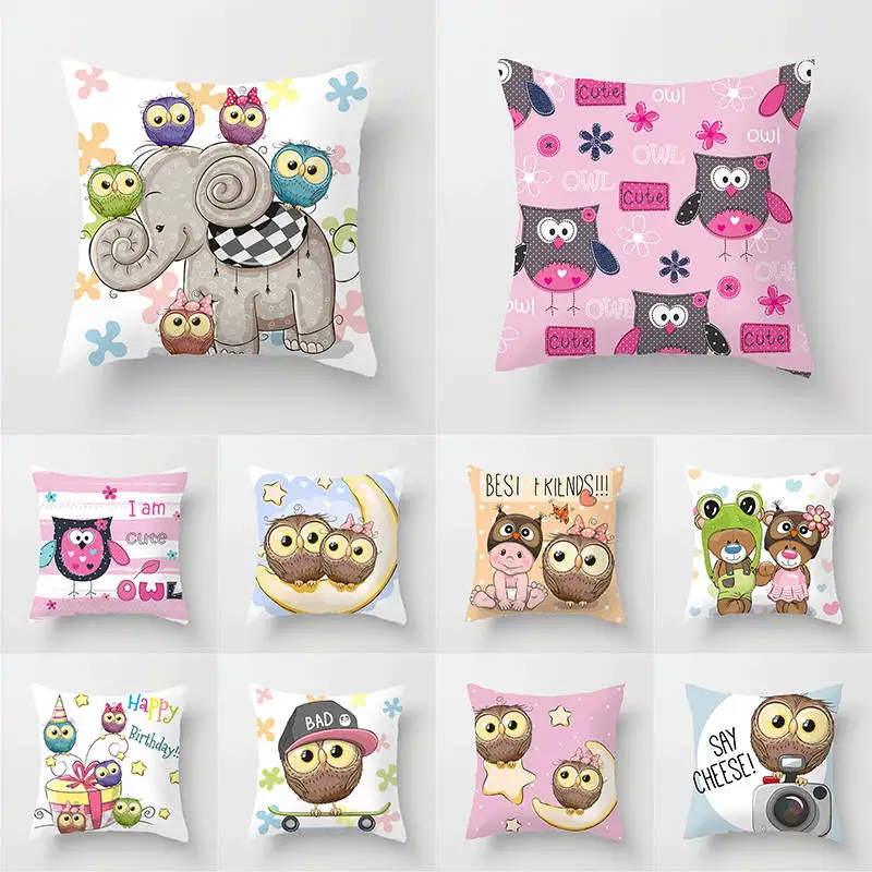 Мультяшная наволочка для подушки с принтом совы, семейный чехол для подушки с рисунком птицы, Полиэстер, Хлопок, 45*45 см, наволочка для подушк...