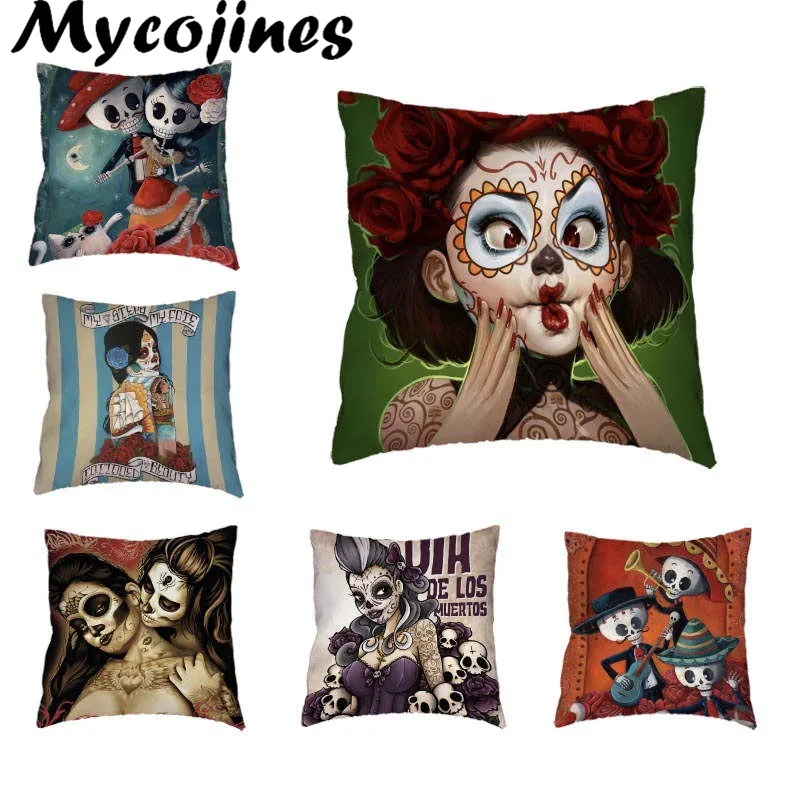 Мертвые сахарный череп Guita полосатый чехлы стул геймера 45*45 см квадратный Сплетенные декоративные вечерние Гостиная наволочка С закатом