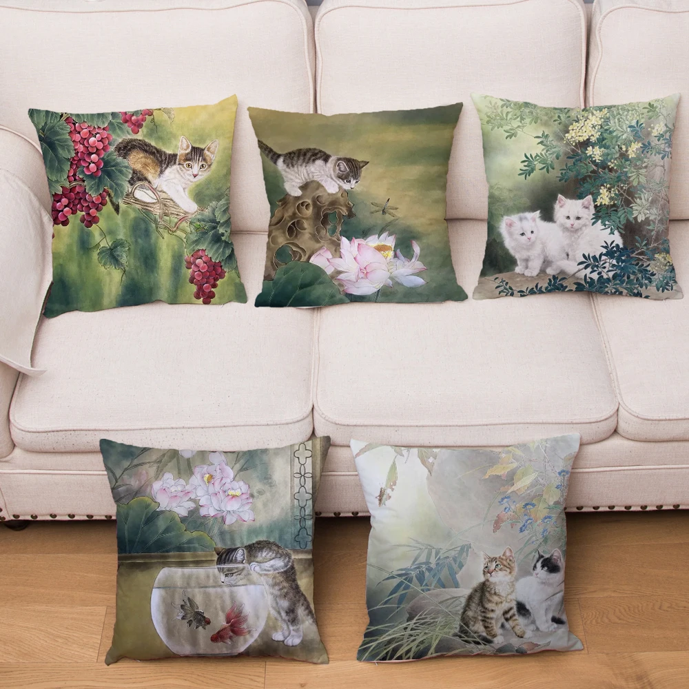 Китайская традиционная живопись милый кот Чехол для подушки с принтом супер мягкие короткие плюшевые ботинки Подушка Чехол домашний декор ...