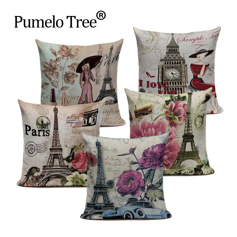 Винтаж декоративные наволочки Лондон Париж цветок розовый бросить подушку Чехол для дивана дома заказ автомобиля красивые наволочки подуш...
