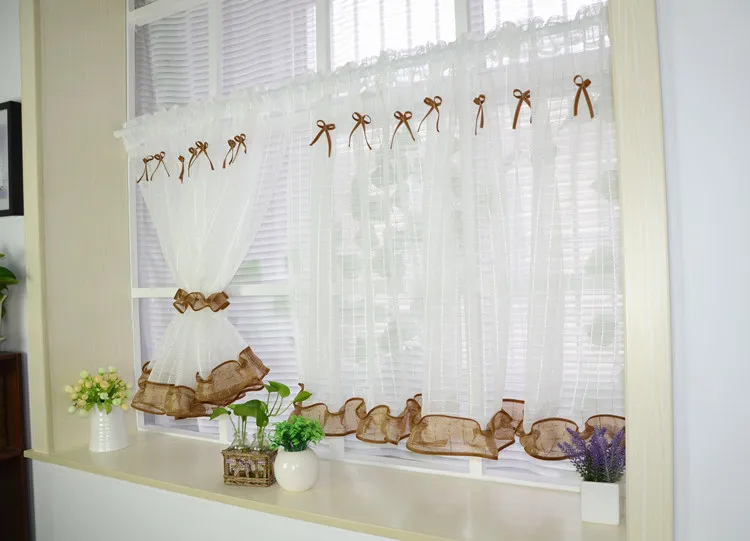 2 шт. настраиваемые Короткие Тюль Шторы с галстуками пастырской Кухня s небольшой Sheer шторы для кабинета/балкон/окно