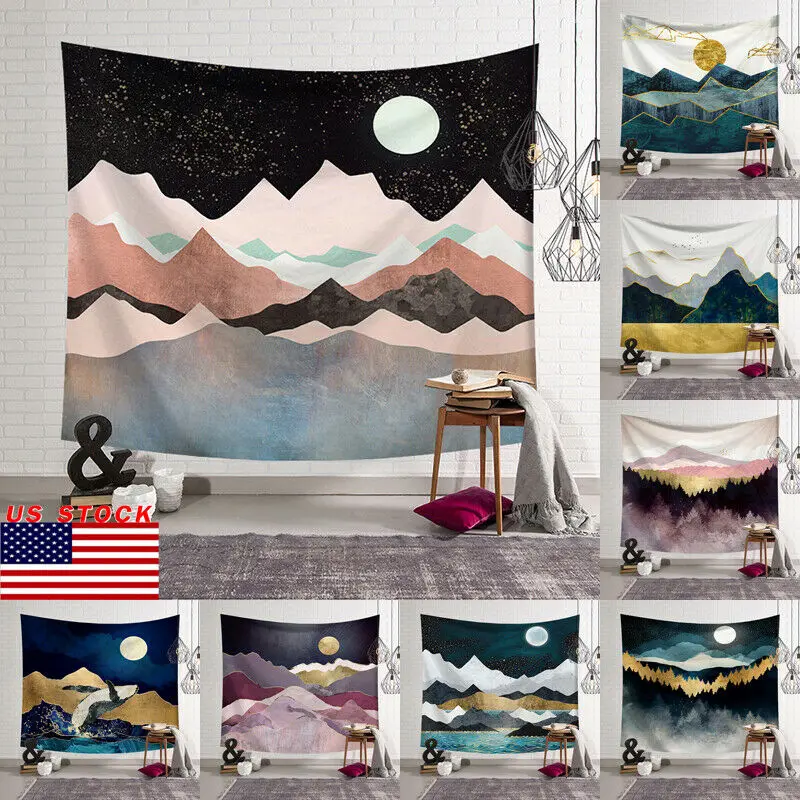 Психоделическое настенное пляжное полотенце с изображением Луны и горы, гобелен, домашний декор, 95 см x 72 см, прямоугольник, гобелен с пейзажным принтом