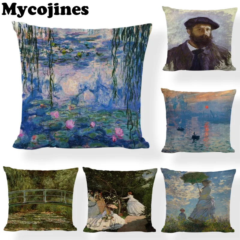 Известный художник Monet 45x45 см чехлы для подушек портрет мост пейзаж лодка дома спальня диван Декор подарок Лен наволочки с принтами