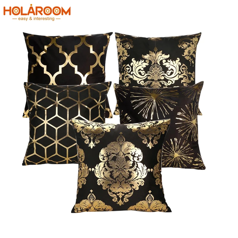 Черный Чехол на подушку геометрические подушки Чехол супер мягкие короткие бархатные золотые Печатные фейерверки наволочка диван, домашни...