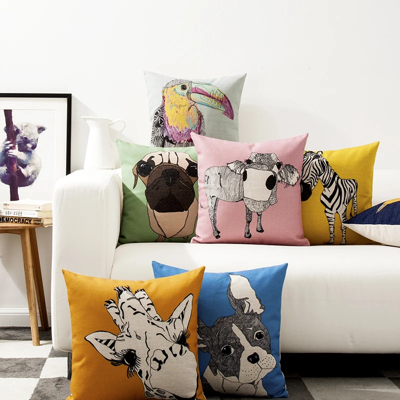 Скандинавский мультфильм чехол для подушки с изображением животных красный желтый птица наволочка для подушки с кошкой домашнее декоратив...