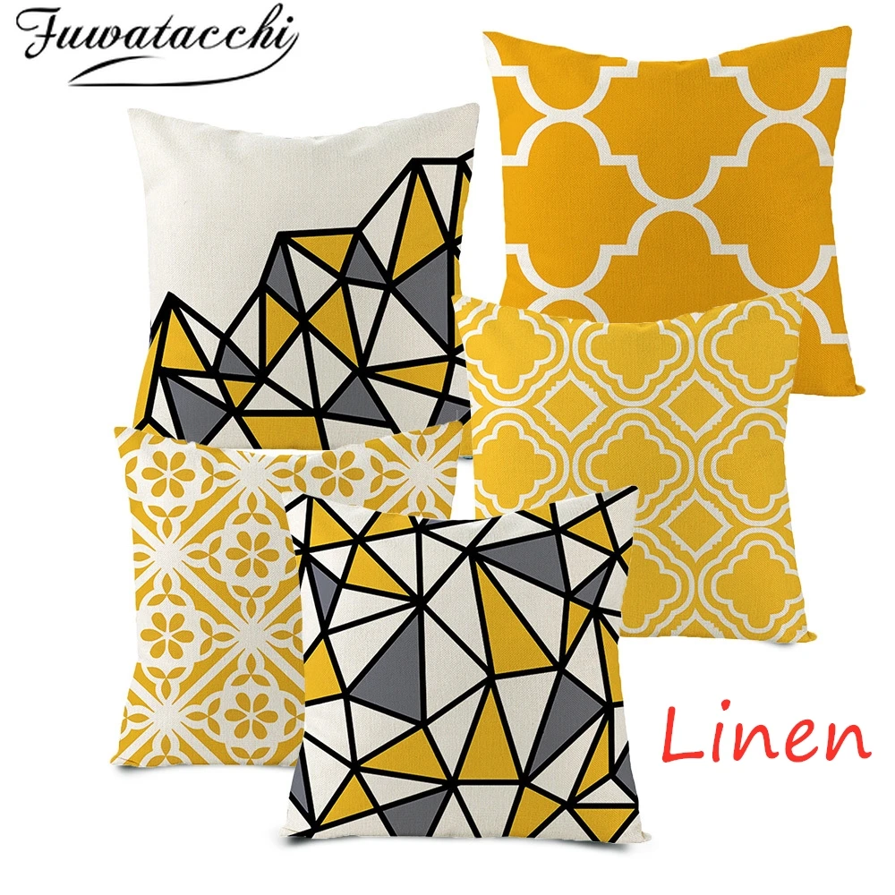 Желтый геометрический Чехол на подушку Fuwatacchi, подушка с геометрическим узором (алмаз), чехол для домашнего стула, дивана, декоративные подушки, Льняные Подушки