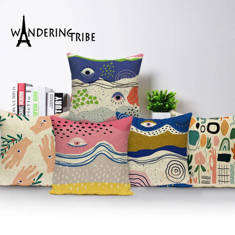 Потертый абстрактный подушки крышка глаз геометрические узоры Подушка Чехол набивная льняная подушка чехол s для девочек диванные подушки Чехлы киссен