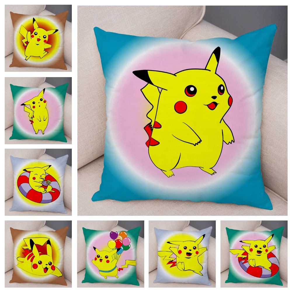 Классическая подушка для игр, декоративная наволочка с покемоном Пикачу, цветная наволочка с мультяшным принтом, подушка для дивана, автомобиля, дома, плюшевая наволочка, 45х45см