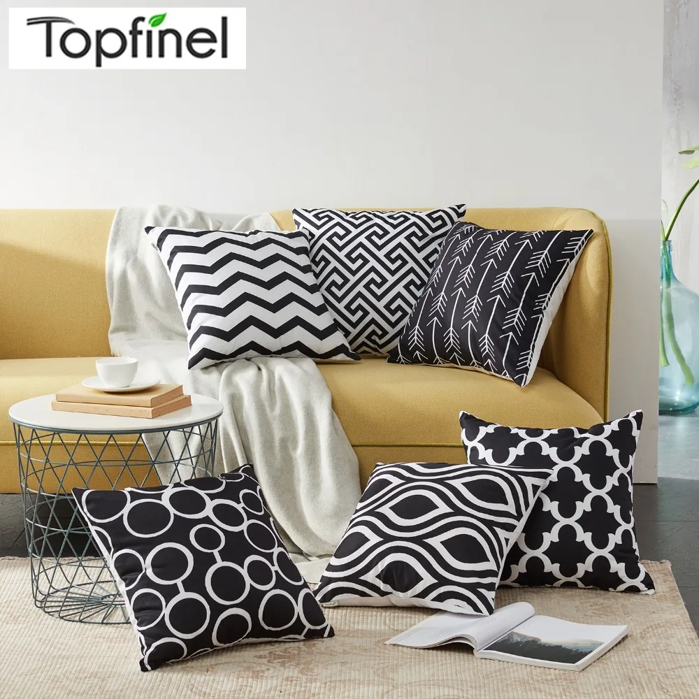 Topfinel Современные Северная Европа геометрические наволочка декоративная Чехол на подушку для дома хлопок лен пледы диване сиденье стула кровать Наволочка на подушку черный цвет Подушка