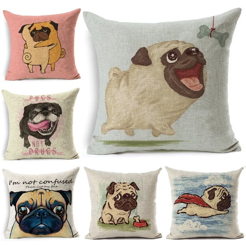 Наволочка Мопс печатная льняная Подушка Французский бульдог квадратная наволочка автомобильный диван домашняя декоративная наволочка 45*45