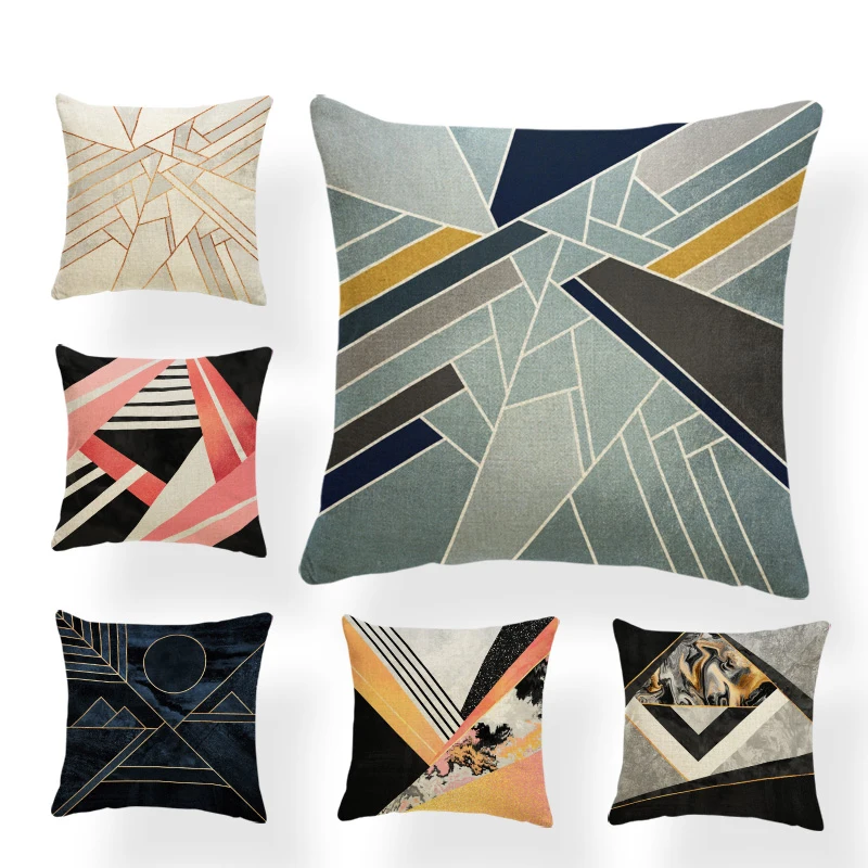 Геометрический цвет: черный, синий чехол для Подушки Текстиль Hill золото Деро Пледы Подушки Чехлы для мангала 45 см x квадратный диван кровать ...