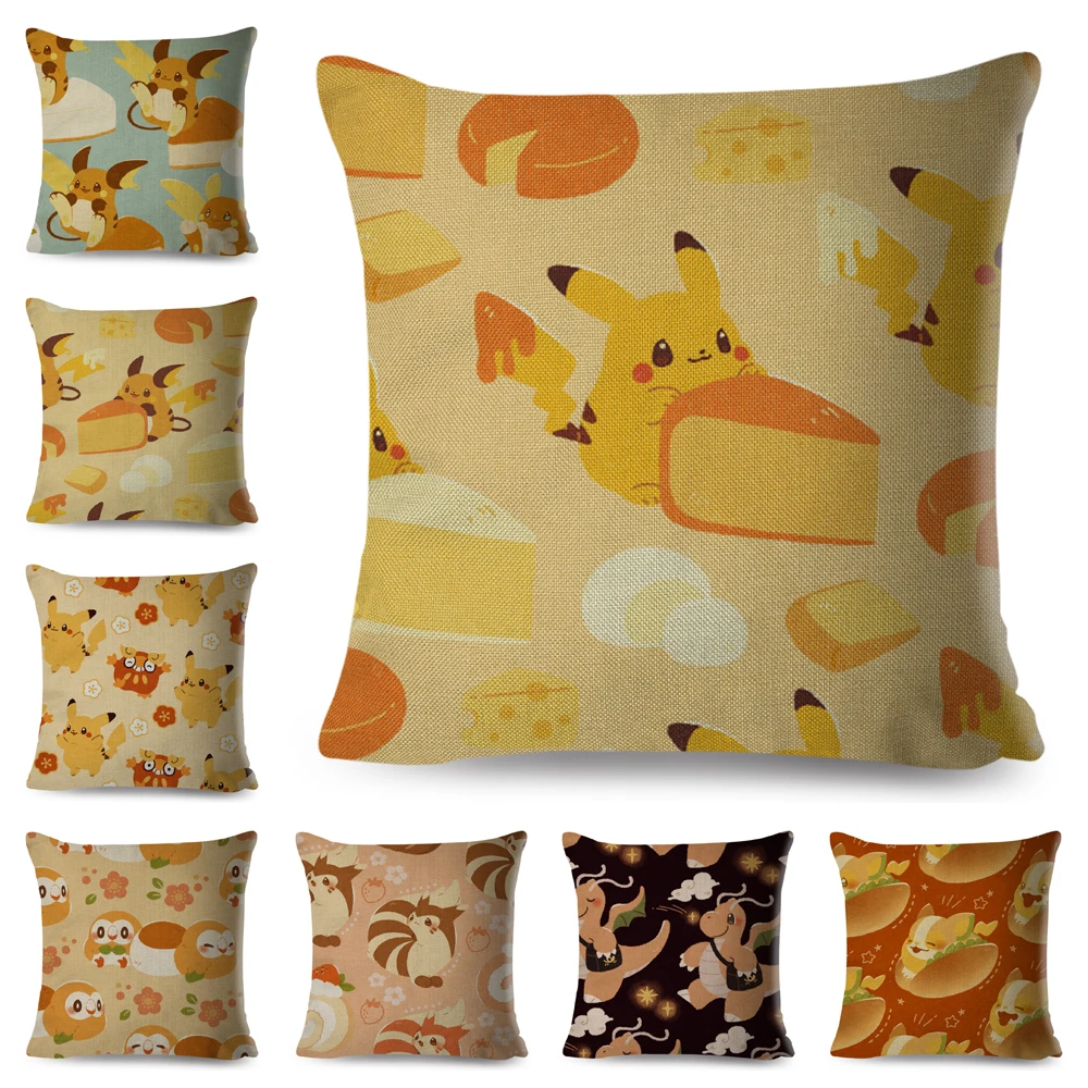 Милая Лоскутная Покемон Подушка с Пикачу крышка Декор Забавный мультфильм райху Япония игровая подушка для дивана домашняя льняная подушка