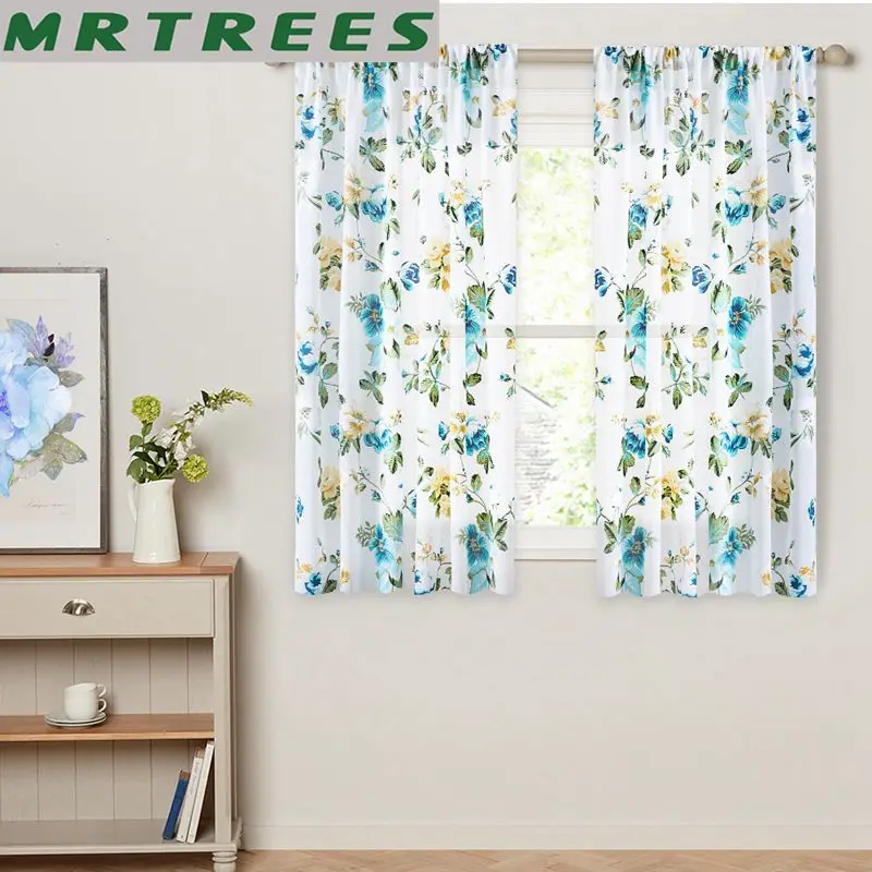 Короткие шторы с цветочным принтом для кухни, вуаль, занавески для гостиной, вуаль, шторы для окон, индивидуальные тканевые занавески