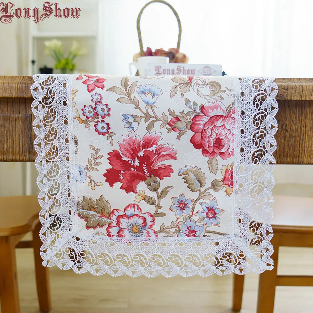 Цветочный стиль современный настольная дорожка мягкие жаккардовые ткань вышитая кружевная отделка красный желтый зеленый цвет