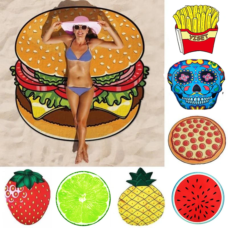 Круглый пляжное полотенце 150*150 см пляжный коврик пончик пицца ананас пляжное полотенце круг кисточки арбуз гамбургер хлопок коврик для ванной